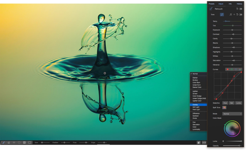 Edge-aware brush makes precise selection a breeze! - Display clipping overlay - iPhone and other new camera RAW support.